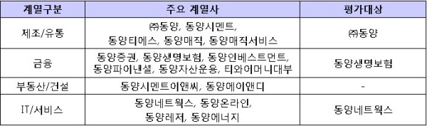 ▲ [표1. 동양의 주요 계열사와 평가대상]