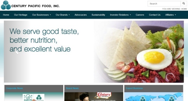 ▲필리핀 통조림제조대기업 센츄리퍼시픽푸드(Century Pacific Food) 홈페이지