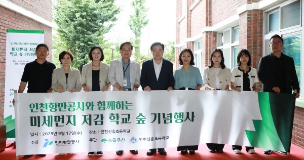 인천항만공사(사장 이경규)에 따르면 2025년 9월17일(수) 인천광역시 신흥초등학교에서 '미세먼지 저감 학교 숲 기념행사'가 개최됐다.