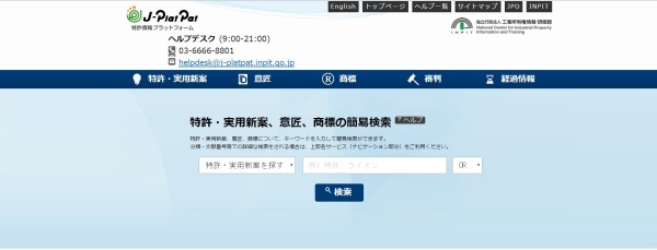▲특허정보플랫폼 J-Platpat 홈페이지