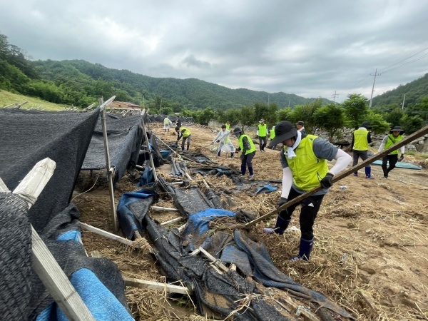 ▲ 충남 금산군 인삼농가 수해복구 긴급지원에 나서 [출처=농협중앙회]