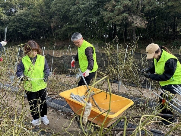 2025년 10월22일(수) 인천광역시 강화군 강화남부농협 관내 농가를 찾은 농산물도매부 20여 명은 NS홈쇼핑, 성남시 자원봉사단체와 함께 고추 지지대 뽑기와 마을 환경정리 작업을 수행하며 일손을 보탰다.