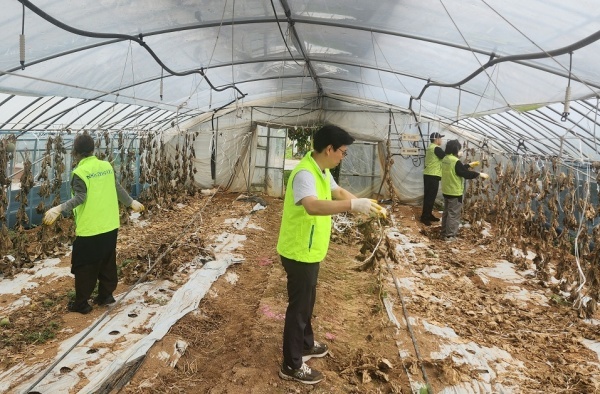 10월20일(월) 경기도 이천시 소재 고추·오이 재배 농가를 찾은 마트사업본부 40여 명은 고추 지지대 및 비닐 수거 작업을 도왔다.