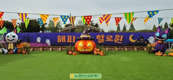 ▲ 안성팜랜드 중앙광장에 설치되어 있는 잭오랜턴 등 할로윈 조형물 [출처=농협경제지주]