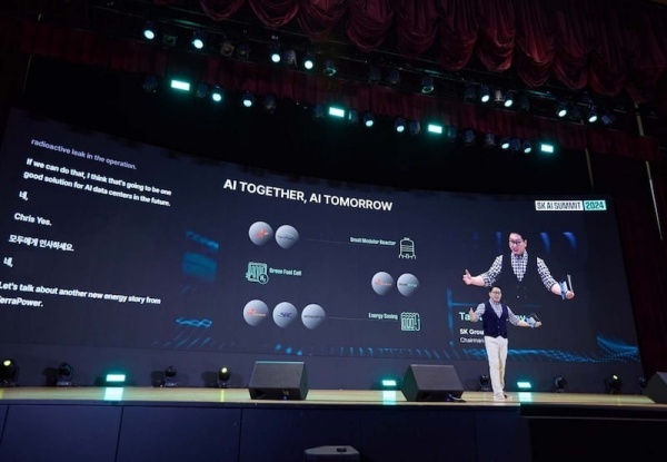 ▲ 최태원 SK그룹 회장, 2024년 11월 SK AI Summit 2024에서 기조연설을 하는 모습 [출처=SK그룹]