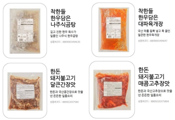 ▲ 농협경제지주가 2025년 7월부터 고삼· 담양 · 상주농협 관내 경로당 40개소를 대상으로 공급하고 있는 반조리식품 4종 [출처=농협경제지주]
