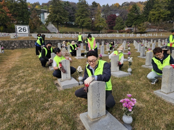 임직원들은 현충탑 참배 후 묘역의 비석을 닦고 잡초를 제거하는 등 환경정화 활동을 하며 호국영령의 숭고한 정신을 기렸다.