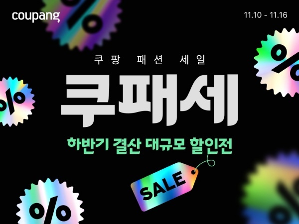 쿠팡(대표이사 박대준)에 따르면 2025년 11월10일(월)부터 16일(일)까지 하반기 결산 대규모 패션 할인전 ‘쿠패세(쿠팡패션세일)’을 진행한다.