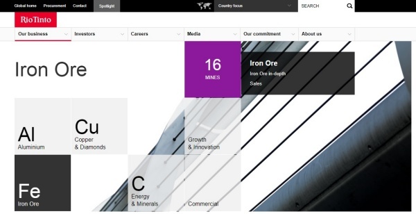 ▲리오틴토(Rio Tinto) 홈페이지