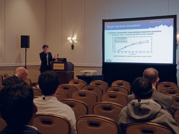 ▲ 제14회 세계철도학술대회(WCRR: World Congress on Railway Research 2025)에서 최성훈 철도연 철도차량본부장이 ‘System design and dynamic performance simulation of a high-speed inboard bogie’를 주제로 발표 [출처=한국철도기술연구원]