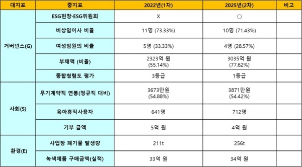 ◇ 2022년 1차 및 2024년 2차 평가 비교... 사회·환경은 비슷한 수준 유지하지만 거버넌스는 악화