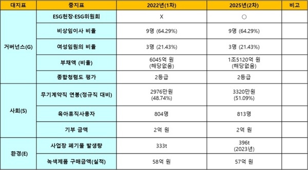 거버넌스(G)는 2년 동안 EGS위원회를 구성한 것은 잘한 점이지만 부채액이 급증해 경영실적은 악화됐다는 점에서 부정적으로 평가했다.