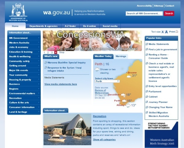 ▲웨스턴오스트레일리아(WA) 주정부의 홈페이지