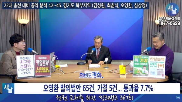 2024년01월30일(화요일) 새날 유튜브 방송은 2020년 21대 국회의원 선거에서 당선된 경기도 의정부시갑 오영환 의원이 제시한 선거공약을 평가했다. 평가를 위한 방송에는 푸른나무, 이상구 원장, 민진규 소장(국가정보전략연구소)이 출연했다.