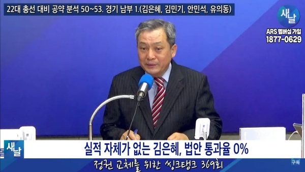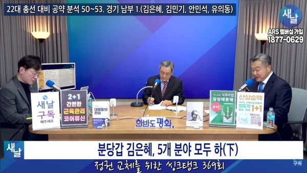 2024년02월13일(화요일) 새날 유튜브 방송은 2020년 21대 국회의원 선거에서 당선된 경기도 성남시 분당구갑 김은혜 전의원이 제시한 선거공약을 평가했다. 평가를 위한 방송에는 푸른나무, 이상구 원장, 민진규 소장(국가정보전략연구소)이 출연했다.