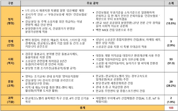 다음으로 △문화교육 공약 28.2% △정치행정 공약 15.5% △경제산업 공약 2.9% △과학기술 공약 1.9%를 각각 기록했다.
