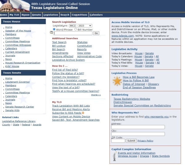 ▲ 미국 텍사스주의회(Texas Legislature) 홈페이지