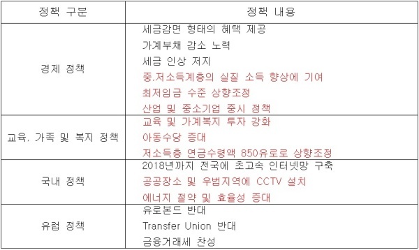 - 물론 독일도 이민문제나 EU통합에 대한 입장, 그리고 경제정책 등으로 정치적 성향이 나누어지기는 합니다만, 하지만 국민의 삶을 좌우하는 사회복지 부분에서는 현 집권당인 기민당(기독교민주당, CDU)과 이전 집권당이었던 사민당(사회민주당, SPD)의 정책이 큰 차이가 없습니다.