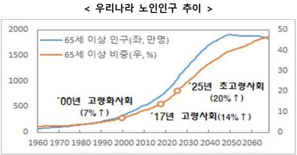 - 전체적인 인구 감소와 고령화로 인해 우리나라의 잠재 성장률에 올해부터 마이너스 영향을 미치기 시작하고, 장기적으로는 경제 규모까지 축소됩니다.