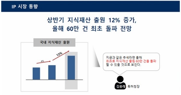○ (사회자) 연간 지식재산권 등록이 60만 건이나 된다니 놀라운 실적이군요. 그럼 특허 출원이나 저작권 등 지재권 관련 시장도 급속하게 커지고 있겠군요?