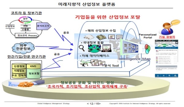 - 저는 국정원 등에서 국내 정보는 더 이상 담당하지 않고, 심지어는 방첩 관련 업무도 경찰로 이관한 후 국방 및 해외 산업정보를 중심으로 대응을 한다고 알고 있는데, 이러한 대응체계 구축에 민간에서 준비한 시스템도 같이 활용되면 좋겠다는 생각입니다.