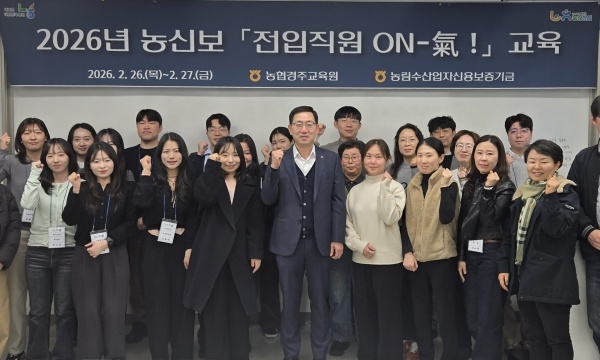 농협중앙회(회장 강호동)에 따르면 2026년 2월26일(목)부터 27일(금)까지 양일간 농림수산업자신용보증기금(이하 '농신보')이 농협 경주교육원에서 전입 직원 업무역량 강화를 위한 2026년 신규 '전입 직원 ON-氣! 교육'을 실시했다.
