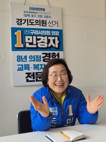 민 후보는 제7대와 8대 구리시 의원을 역임했으며 최초의 여성 의장으로 활동했다. 8년간의 의정활동은 여성 정치인이 많지 않은 지역에서 양성평등 정치에 대해 눈을 떤 계기로 작용했다. 그럼에도 아쉬움이 많이 남아 지역을 위해 다시 헌신할 방법을 찾고자 노력했다.
