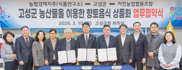 농협중앙회(회장 강호동)에 따르면 2026년 3월10일(화) 농협경제지주가 강원특별자치도 고성군청에서 고성군, 거진농협과 함께 '고성군 농산물을 활용한 향토음식 상품화 업무협약(MOU)'을 체결했다.