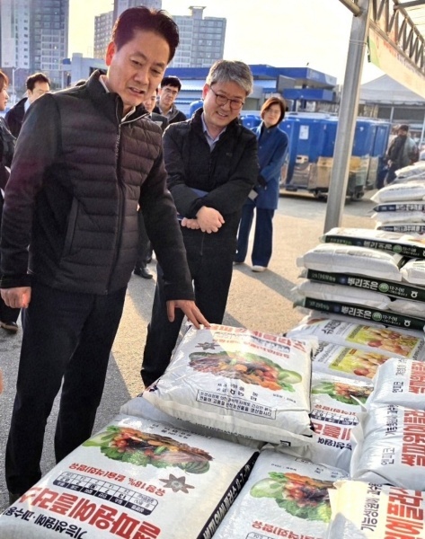 ▲ 3월20일 취임 첫 행보로 전북 남원농협을 찾은 김주양 신임 농업경제대표이사가 비료 수급 상황을 점검하고 있다 [출처=농협중앙회]