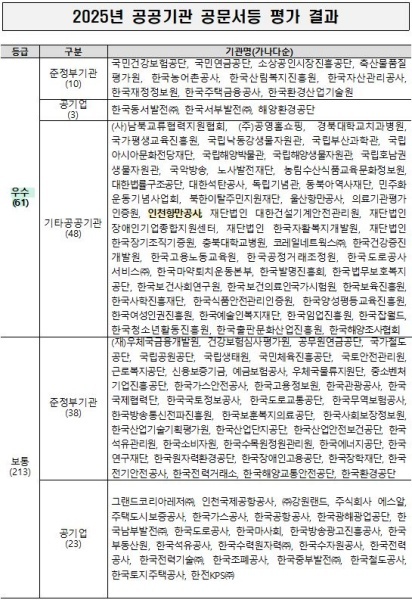 ▲ 2025년 공공기관 공문서 등 평가결과 등급표 [출처=인천항만공사]
