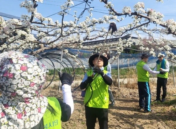 같은 날 이주호 본부장을 비롯한 정보보호본부 직원 11명도 경기 안성시 배 농가를 방문해 배꽃 수정과 주변 환경 정리 작업을 지원했다.