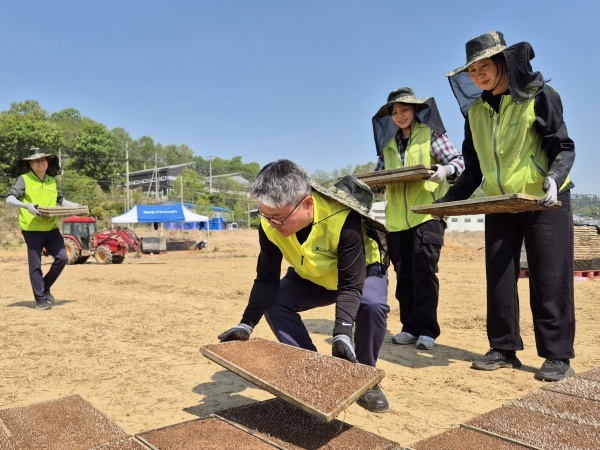 자재사업부 직원 20여 명은 경기 화성 관내 벼 재배 농가를 방문해 모판 이동 작업을 지원하며 벼농사 기초 작업에 일손을 보탰다.