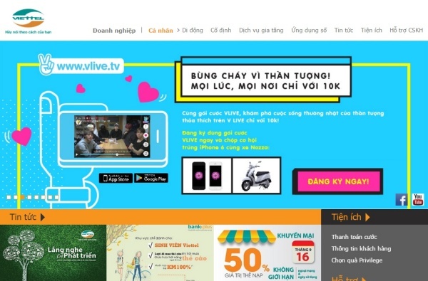 ▲베트남 이동통신대기업 비에텔(Viettel) 홈페이지
