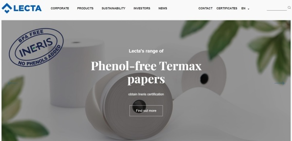 영국의 렉타(Lecta)에 따르면 최근 페놀이 없는 터맥스(Phenol-Free Termax) 종이에 대한 이너리스(Ineris) 인증을 획득했다.