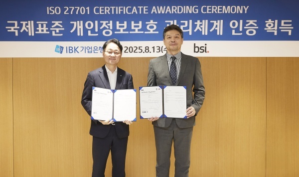IBK기업은행, 국제표준 개인정보보호 인증 ‘ISO27701’ 획득