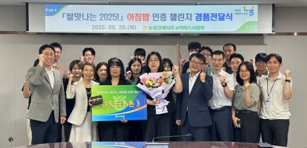 농협중앙회(회장 강호동)에 따르면 경제지주(농업경제대표이사 박서홍)가 2025년 8월28일(목) 농협전북본부에서 「아침밥 인증 챌린지」 우수 참여 고객에게 금 5돈 등 500만 원 규모의 경품을 전달했다.