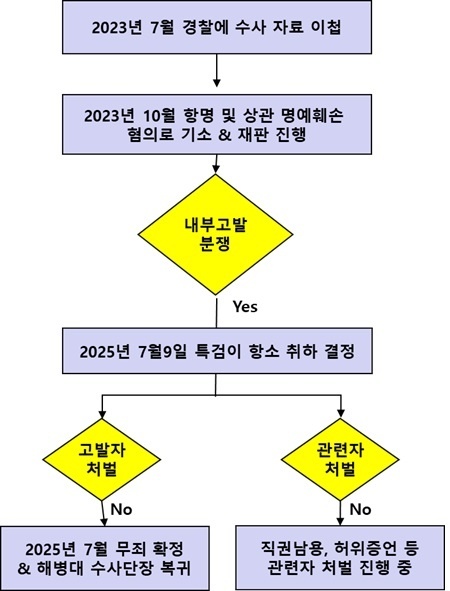 2024년 11월 군검찰은 박정훈 대령에게 징역 3년을 구형했지만 2025년 1월 1심 군사법원은 항명 및 상관 명예훼손죄 등에 대해 무죄로 판단했다. 그럼에도 검찰은 업무상 과실치사 혐의를 받은 임성근 소장에 대한 수사에 소극적으로 임했다.
