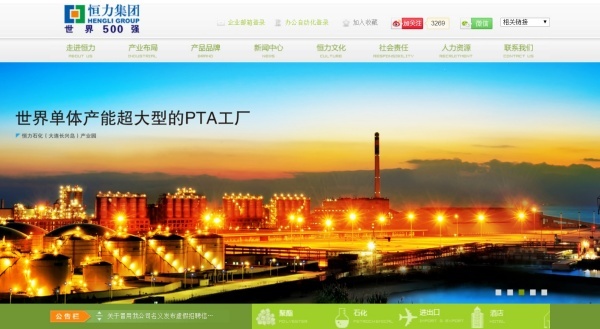 ▲ 헝리그룹(恒力集团) 홈페이지