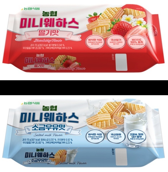 농협식품(대표이사 이방현)에 따르면 국산 가루쌀·밀로 만든 미니 웨하스 2종을 출시했다. 이번에 출시한 「소금우유·딸기 미니웨하스」는 국산 가루쌀과 밀로 반죽한 웨이퍼에 크림을 더해 바삭한 식감과 달콤한 맛이 특징이다.