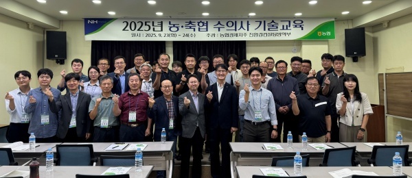 농협중앙회(회장 강호동) 농협경제지주(축산경제대표이사 안병우)에 따르면 2025년 9월23일(화)부터 24일(수) 양일 간 농협생명 수안보수련원에서 전국 농·축협 동물병원에 근무하는 수의사 40여 명을 대상으로 「농·축협 수의사 기술교육」을 실시했다.