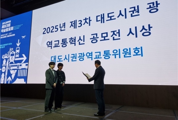 한국철도기술연구원(원장 사공명, 이하 철도연)에 따르면 2025년 9월25일(목) 제주신화월드에서 ‘2025년 제3회 대도시권 광역교통혁신 공모전’ 우수팀 4팀을 선정해 유관기관과 함께 시상했다.