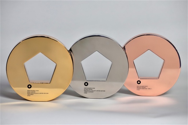▲ KT&G '2025 펜타워즈' 수상 트로피 이미지(왼쪽부터 골드, 실버, 브론즈상) [출처=KT&G]
