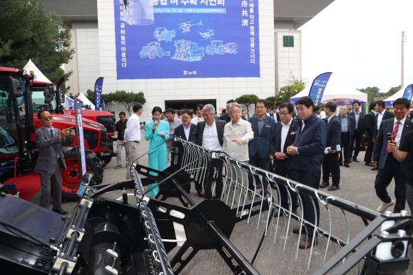 농협중앙회(회장 강호동)에 따르면 2025년 10월17일(금) 세종특별자치시 농어민문화체육센터 일대에서 「벼 수확 시연회」를 개최했다.