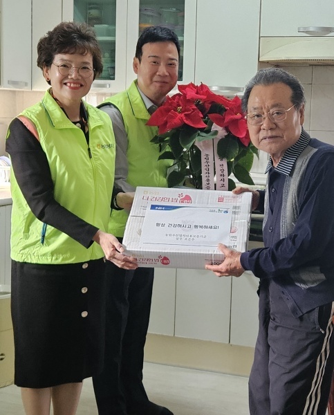 ▲ 농신보 동행봉사단, 2년째 매월 국가유공자 본인 및 유족을 직접 찾아가 이야기를 나누고 쌀과 과일 등 우리 농산물로 구성된 선물을 전달하며 존경과 감사의 마음을 전하고 있다 [출처=농협중앙회]