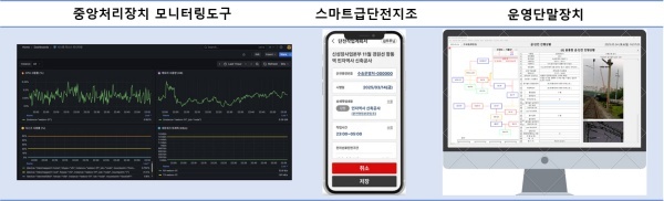 ‘스마트 급단전 운영시스템’은 철도연이 한국철도공사 및 구스텍㈜과 함께 개발했으며 철도 급전, 단전 작업과정을 담당하는 철도교통관제센터의 관제사가 사용하는 ‘관제사용 운영단말장치’, 유지보수 작업 현장의 전기안전관리자가 사용하는 ‘스마트폰 앱’도 포함하고 있다.