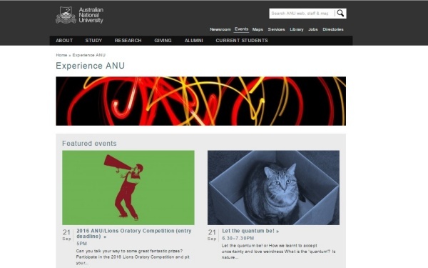 ▲오스트레일리아국립대학(Australian National University, ANU)의 홈페이지