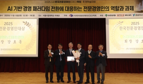 한국전문경영인학회는 “현장 기반의 혁신 리더십과 농업·농촌 발전 공로가 탁월하다”며 강 회장을 만장일치로 선정했다고 밝혔다.