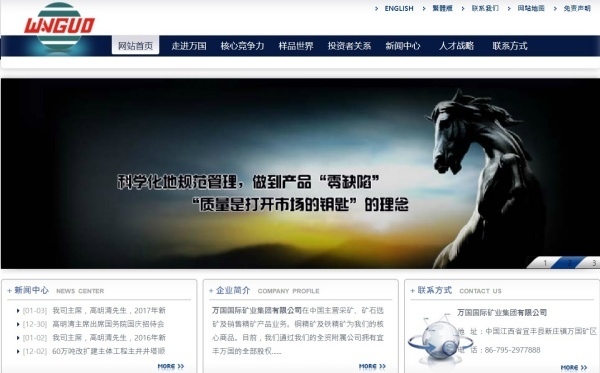 ▲중국 완궈인터내셔널 마이닝(万国国际矿业) 홈페이지