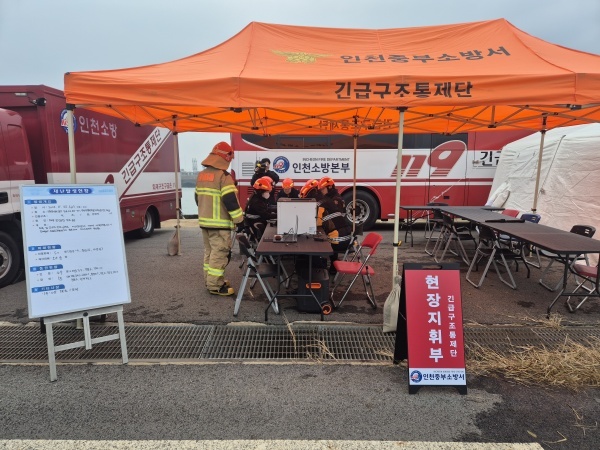 ▲ 인천항만공사, 선박충돌사고를 가정해 ‘2025년 READY Korea 4차 훈련(현장 지휘부) [출처=인천항만공사]