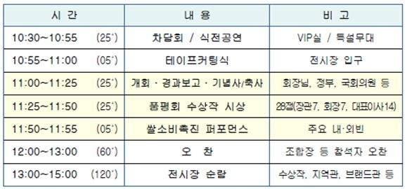 11월28일부터 3일 간 열리는 이번 행사는 국산 쌀로 만든 우리술과 쌀 가공식품을 발굴·홍보하고 판매를 활성화하기 위해 마련된 대국민 축제다. 크게 품평회와 페스타 두 가지 메인행사로 진행된다.